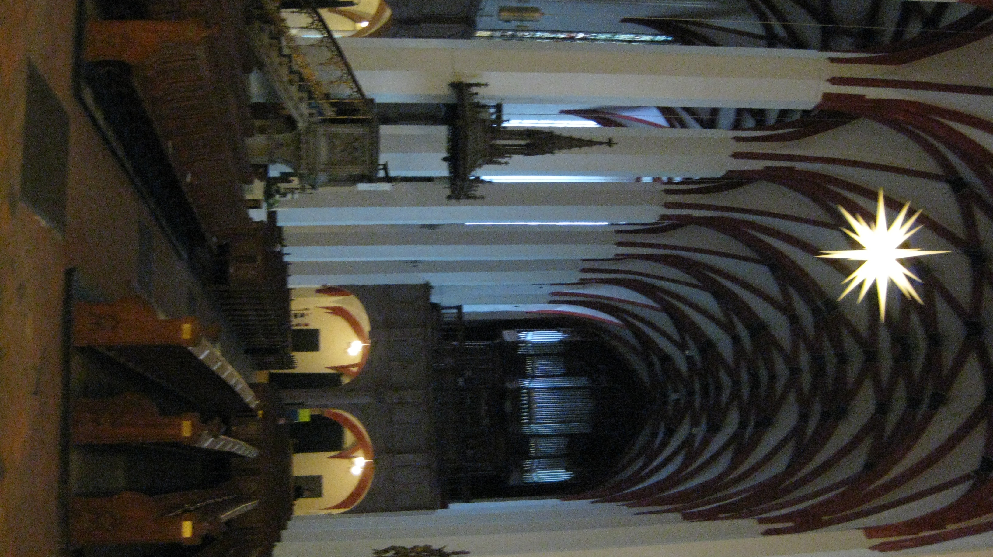 Unlike the churches in Paderborn, there are no Christmas trees in the Thomaskirche, but a large Star of Bethlehem is displayed in the front of the church. A guide from the church told us that the organ in the choir loft is not Bach’s original organ, but one that has been recently refurbished. As it turns out, we will be performing the concert from the choir loft tomorrow and not from the front of the church, so I’ll get a good look at the organ tomorrow. A second, smaller organ sits on the North side of the church (across from the pulpit) which is an organ closer to what Bach might have played.